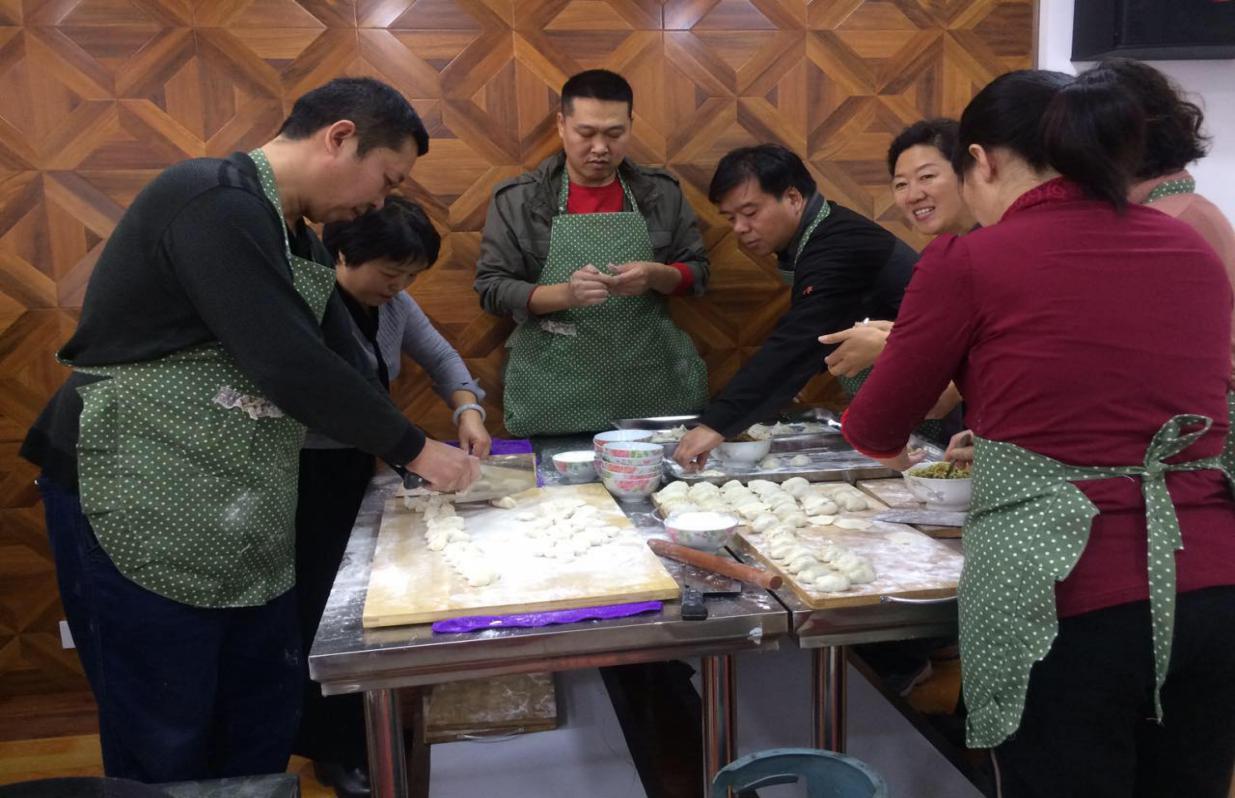捏餃子比賽也在緊張激烈的進行著,她揉面,你搟皮,我裝餡忙而不亂,女神、男神一起動手。