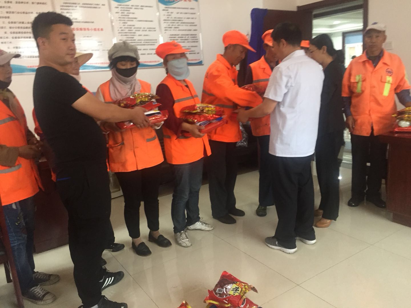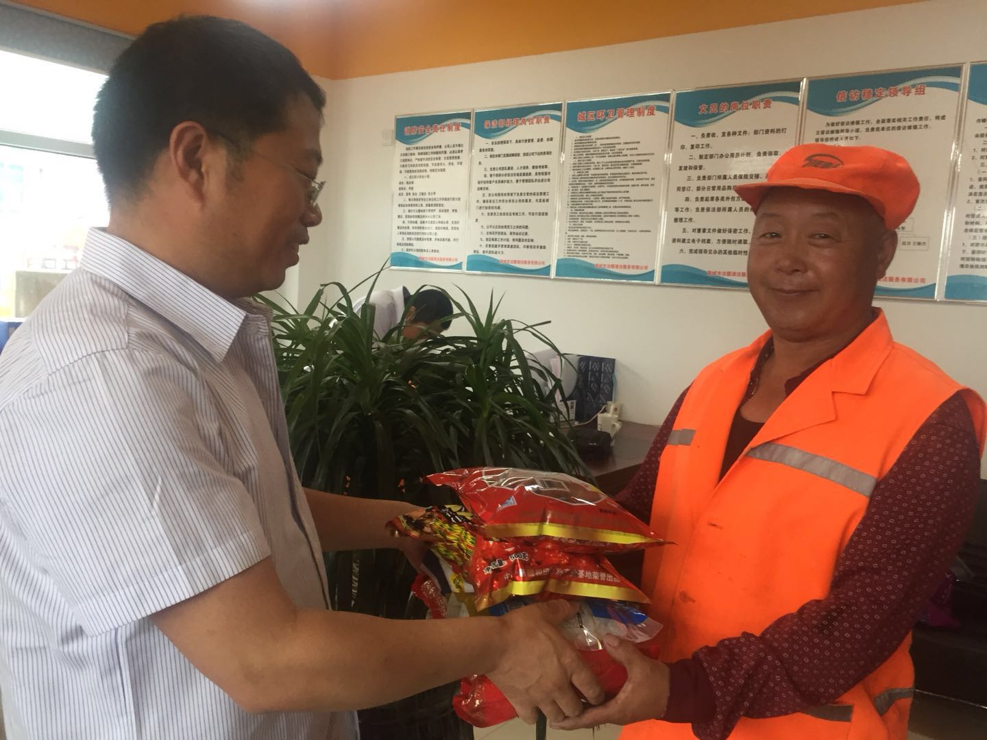 端午節(jié)來臨之際,為弘揚傳統(tǒng)文化,我公司按照傳統(tǒng)習(xí)俗為環(huán)衛(wèi)工準(zhǔn)備了節(jié)日禮品。濃濃棕香,綿綿情長。6月5日下午,在一年一度的端午佳節(jié)來臨之際,一袋袋香香的糯米、大大的紅棗、白糖、冰糖飽含著公司關(guān)愛和祝福的端陽節(jié)福利由公司領(lǐng)導(dǎo)親自發(fā)放到為美化城區(qū)大街小巷作出默默奉獻(xiàn)的公司環(huán)衛(wèi)工人手中。