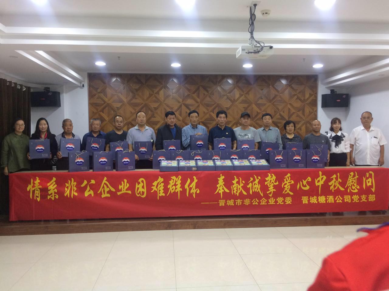 9月11日上午,秋雨連綿。值此中秋佳節(jié)來(lái)臨之際,晉城市非公企業(yè)黨委聯(lián)合晉城糖酒公司黨支部、貴州茅臺(tái)山西省晉城糖酒專(zhuān)賣(mài)店“情系困難群體、奉獻(xiàn)誠(chéng)摯愛(ài)心”中秋慰問(wèn)活動(dòng)在潔霸公司舉行。