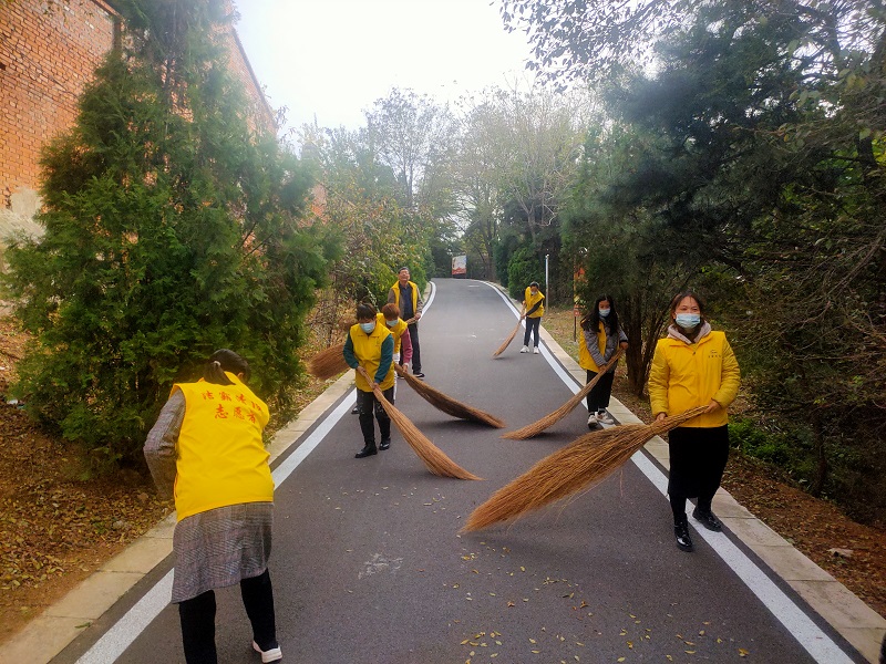 志愿者統(tǒng)一穿著志愿者黃色馬甲,帶著掃帚、撿拾器、垃圾袋等清掃工具,來到白馬寺森林公園,清掃白馬寺山頂?shù)介L江支隊紀(jì)念林的步道上的落葉。活動中,大家熱情高漲,現(xiàn)場清掃活動井然有序。
