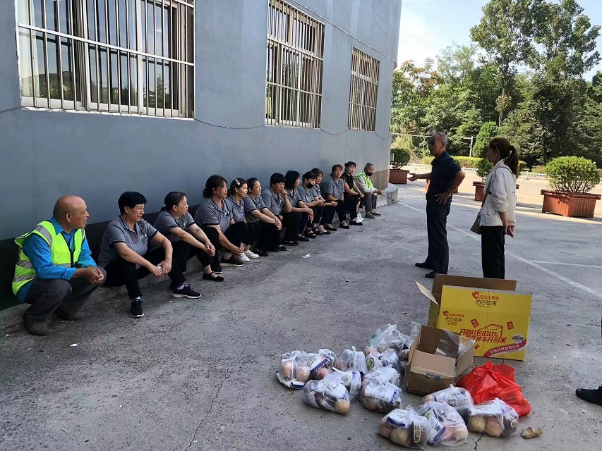 工會主席崔偉一行先后走訪萬達(dá)廣場、山西科技學(xué)院、晉城市金鳳凰廣場、鳳西廣場、白馬寺、青蓮寺、陽城北留潔霸洗業(yè)等地,對戶外高溫下作業(yè)的高空清洗員工、物業(yè)保潔員工、環(huán)衛(wèi)員工、園林綠化員工及洗衣廠員工等一線勞動者進(jìn)行慰問。崔主席充分肯定了高溫下堅持奮戰(zhàn)在一線員工的敬業(yè)精神,感謝他們?yōu)闈嵃浴皯?zhàn)高溫、斗酷暑”付出的辛勤勞動,并將面包、桃子、白糖等慰問品送到員工手中,讓高溫下堅守在一線的員工感受到來自潔霸大家庭的關(guān)愛。