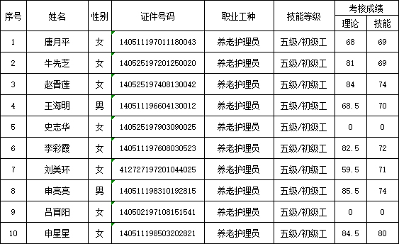 山西潔霸清潔服務(wù)集團(tuán)股份有限公司職業(yè)技能等級(jí)認(rèn)定中心現(xiàn)將2026年1月22日認(rèn)定人員成績(jī)公示如下: